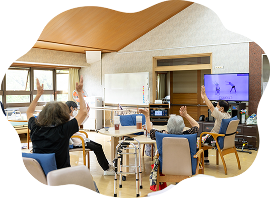 要支援1〜2・要介護1〜5の人を対象とした施設です。 ご利用者様がご自分の能力を活かし、自立した生活をサポートすることを目的としています。 基本サービス料以外の食事やその他実費に関しては自己負担となります。また、バランスのとれた食事の提供や機能訓練、レクリエーションなど充実した時間を過ごすことができます。